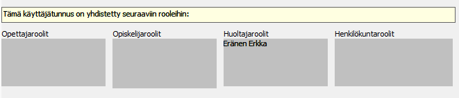 Konversiossa muodostetut uudet käyttäjätunnukset yhdistetään kyseisen henkilöroolin rekisterikortille roolirekisteriin Wilman käyttäjätunnukset -kenttään .