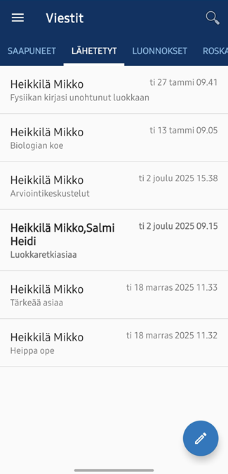- Lähetetyt-kansiossa ovat lähetetyt viestit.