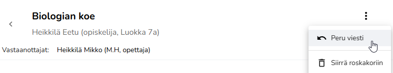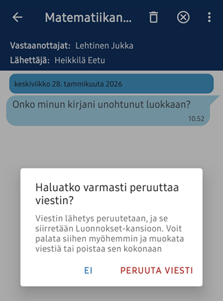 Opiskelijat ja huoltajat voivat perua lähettämänsä viestin, jos kukaan vastaanottajista ei ole vielä lukenut sitä.