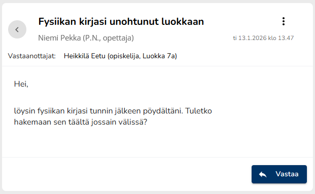 Viestin lähettänyt opettaja tai henkilökuntaan kuuluva henkilö näkee kuitenkin, että vastaanottaja on lukenut viestin, vaikka se olisikin merkitty lukemattomaksi.