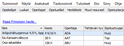 - Jokaista tehtävää ja sitä hoitavaa opettajaa kohden luodaan oma rivinsä. Jos kaksi opettajaa osallistuu samaan tehtävään, tehdään siis 2 riviä.