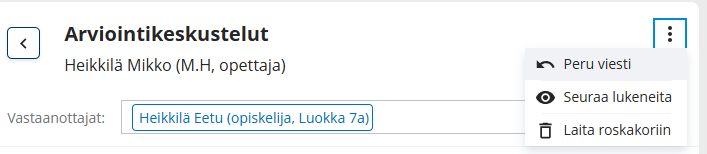 Opiskelijat ja huoltajat voivat perua lähettämänsä viestin, jos kukaan vastaanottajista ei ole vielä lukenut sitä.