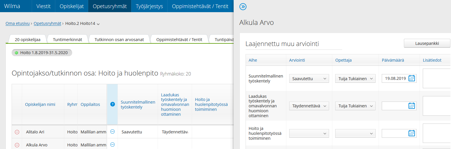 I Wilma finns motsvarande funktionalitet på gruppens bedömningssida.