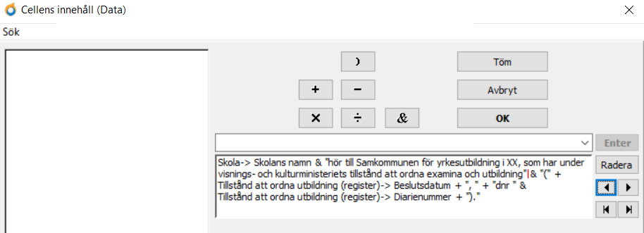 - Gå till "XX" och ersätt med er utbildningsanordnare. Klicka sedan på Enter för att få in meningen tillbaka i definitionen. Klicka ännu på OK och Spara utskriftsmallen.